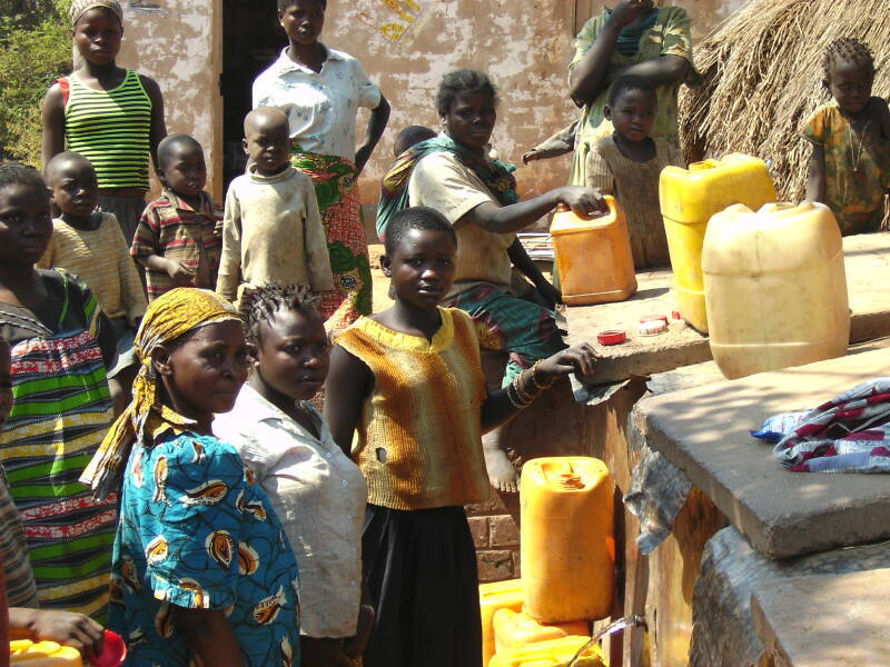 Al zullen er ook wel zijn die de emmer bij wijze van douche staande in de badkuip over het hoofd uitgieten. Het ontbijt bestaat uit brood, jam en thee of koffie. Aangezien we ons hier in zijn thuisbasis bevinden, wordt het dagprogramma volledig bepaald door Abbé Norbert. Gekleed in een smetteloos witte soutane leidt hij ons rond op de missiepost. De bouwwoede van de vroegere missionarissen blijft mij verbazen. Zelfs in deze afgelegen missiepost hebben zij een immense kerk neergezet. Abbé Norbert toont ons met gepaste trots de gebouwen en het interieur. In de doopkapel laat “Nora” (de roepnaam van Abbé Norbert) zelfs even zijn muzikaal talent bewonderen. Iets wat later op de dag trouwens nog uitgebreid aan bod zal komen. Nadat we ook nog de plaatselijke schrijnwerkerij hebben bezocht maken we een klein voettochtje door de brousse naar de waterput van Mokabe die de missie en het dorp van drinkbaar water voorziet. Na een tijdje door het hoge gras te hebben geploegd komen we aan op een plaats waar een gemetselde waterput staat die is afgedekt om vervuiling door kadavers van vogels en andere dieren te voorkomen. Deze bron moet wel het kostbaarste bezit van het dorp zijn want drinkbaar water is in Congo geen evidentie. Op de terugweg lopen we langs het bijna droogstaande riviertje en door de dorpsmarkt naar het lokale dispensarium. Daar worden we door een verpleegster en een dokter te woord gestaan. Blijkbaar zijn hepatitis B en C en tuberculose hier veel voorkomende ziektes maar ook cholera is in deze streken vaak nog endemisch. Bijna onvermijdelijk zijn er ook enkele HIV-besmettingen. De verpleegster toont ons de apotheek waarover ze beschikken om al deze kwalen te bestrijden. De middelen zijn schaars en de bevoorrading gebeurt grotendeels via een Duitse NGO.