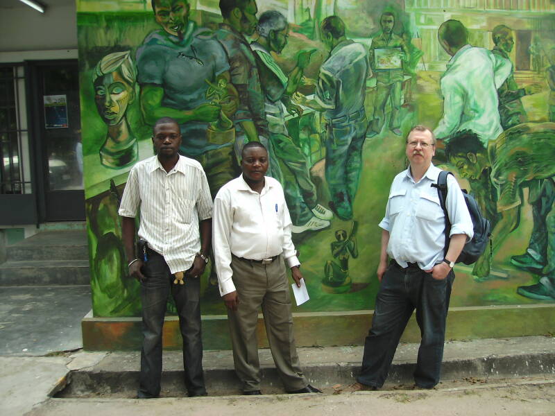 Met Francis en Delphin in de Academie des Beaux Arts te Kinshasa (Foto : E. Merveillie)