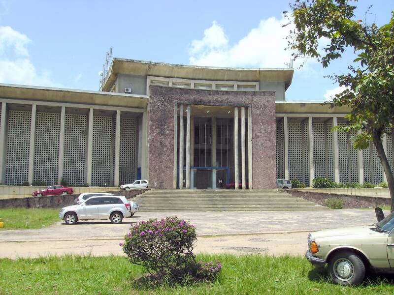 Terug in Moanda hebben we toen vooral van een seaside holliday-gevoel kunnen genieten en verorberden er met veel smaak een prima maaltijd op het terras met zicht op zee van het Hotel New Cliff. Een wat mij betreft aan te bevelen adres want het is een netjes en goed verzorgde zaak die wordt gerund door ene Marie Sako, een charmante métise. In Moanda lijkt er momenteel een zekere bouwwoede te heersen waarbij vooral de Libanezen zich nadrukkelijk manifesteren. Hier en daar wordt er wel een oude koloniale residentie hertimmerd en gerenoveerd maar uit wat we te zien kregen kon je toch eerder besluiten dat de Libanese bouwheren zich vooral op de nieuwbouw hebben gestort. Zo bezochten we onder andere de ruïne van het voormalige gereputeerde Hotel Mangrove. Terwijl dit gebouw verder staat te verkommeren, wordt verderop samen met nog enkele andere gastverblijven een nieuw “Hotel Mangrove” neergezet. Architecturaal niets meer dan gewoon een vierkante betonnendoos maar wel met de modernste voorzieningen. Naar het schijnt is een luxueuze verpozing, hier aan de Atlantische kust bij de smalle, maar zeer gefortuneerde toplaag van de Congolezen tegenwoordig zeer in trek. Toen we even informeerden naar de prijzen voor een dergelijk verblijf werd ons dan ook een zeer pittig tarief geciteerd.