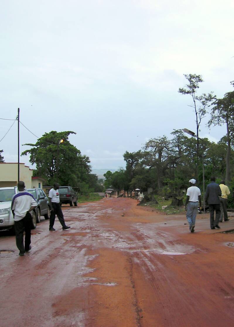 In Matadi aangekomen willen we ook eens een glimp van de haven opvangen. Bij een vorige reis was dit mooi te doen vanaf het terras van het bar - restaurant "Le Train" dat uitkeek op een deel van de rivier en de haven. We waren toen zelfs eerder op de dag tot het haventerrein zelf kunnen doordringen omdat de reisorganisator al op voorhand voor het nodige papierwerk had gezorgd. En dan heeft het nog heel wat tijd en moeite gekost! Het plan is dus om de haven deze keer vanaf het terras van "Le Train" te gaan bezichtigen en gelijk ook het middagmaal te nuttigen. We parkeren de jeep en met vastberaden tred leid ik het gezelschap op weg naar onze uitkijkpost. Ik vind echter nergens een aanwijzing en toch zou ik zweren dat het hier in de buurt was! Ik informeer mij dan maar bij de mensen op straat. Zo vernemen we dat ook deze zaak, net zoals de Pic-Nic aan de vroegere aanlegplaats van de bac, in minder dan een jaar tijd al de deuren heeft gesloten. Er wordt iets verteld over een aan de gang zijnd proces tegen de uitbaters van de 2 zaken waarbij er duistere machten spelen, enfin een afrekening onder locale politici en in het zakenmilieu. Niets te zien maar ook niets te eten dus. Zo belanden we in een Libanese bakkerij annex snackbar. We nemen onze tijd en nadien doen we ook nog een flinke wandeling door de straten van Matadi met onder andere ook de markt. Ten slotte rijden we verder tot in Kimpese waar we de nacht zullen doorbrengen. Het mag er ook eens een dagje rustiger aan toe gaan. Te meer dat het morgen des te pittiger belooft te worden.